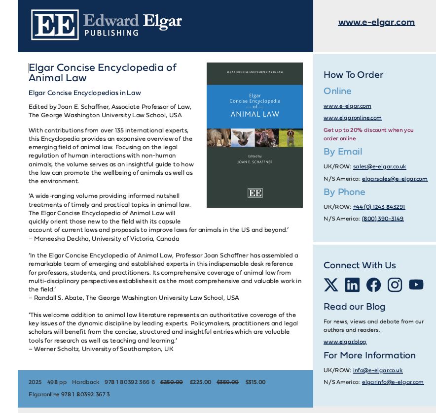 Earlier this year, we contributed to the Elgar Concise Encyclopedia of Animal Law, penning the entry on “Farmed Animals and US Law” alongside our board member and former Executive Director, Cheryl Leahy and Senior Director of Legal Advocacy, Piper Hoffman. This isn’t your typical academic exercise.